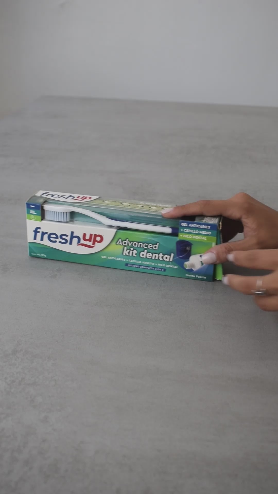 Solución integrada para una limpieza buco dental profunda y más efectiva. Contiene 1 Gel dental 125g + cepillo Universal medio + hilo dental.